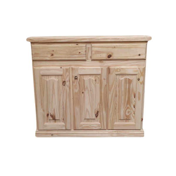 BAHIUT de PINO. Cuenta con 2 CAJONES amplios sin correderas metálicas y 3 PUERTAS en la parte inferior donde detras de ellas se encuentra un estante divisor.