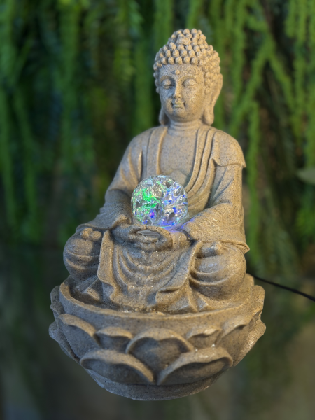 FUENTE BUDA BEIGE SENTADO CON BOLA AL MEDIO DE 20X20X30