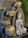 FUENTE BUDA SENTADO CON MANOS JUNTAS Y CUATRO JARRONES A LA IZQUIERDA