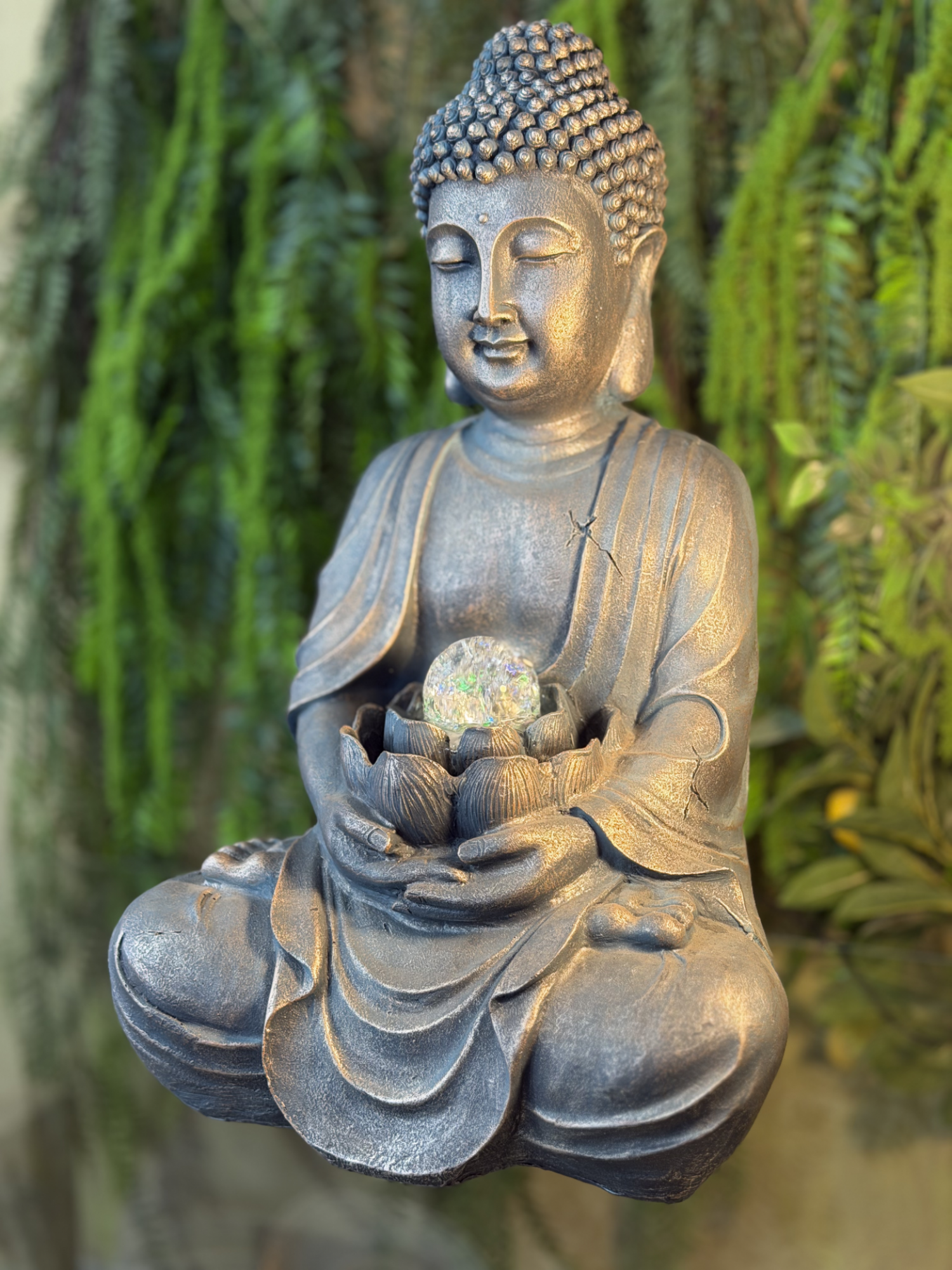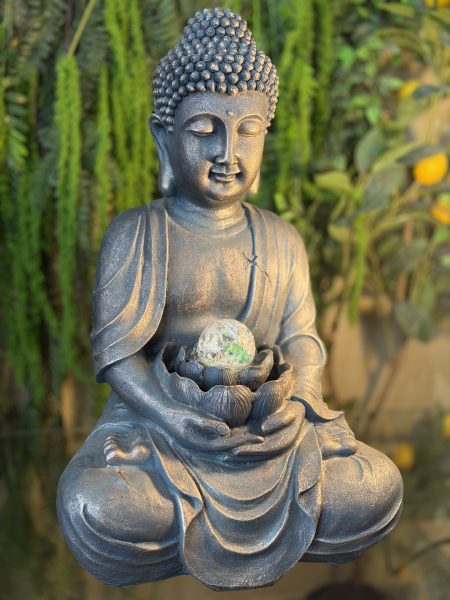 FUENTE BUDA SENTADO GRIS CON BOLA AL MEDIO DE 50CM
