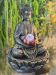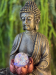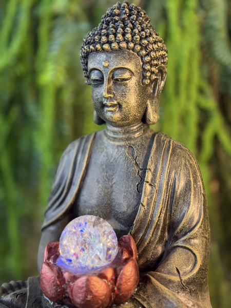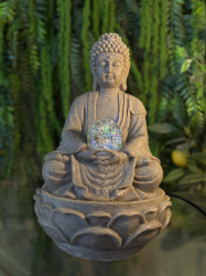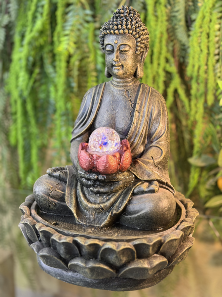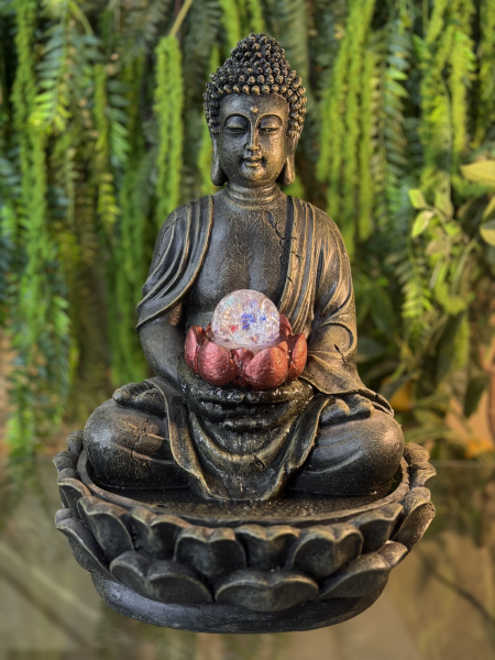 FUENTE BUDA SENTADO NEGRO CON BOLA GIRATORIA EN FLOR ROSA
