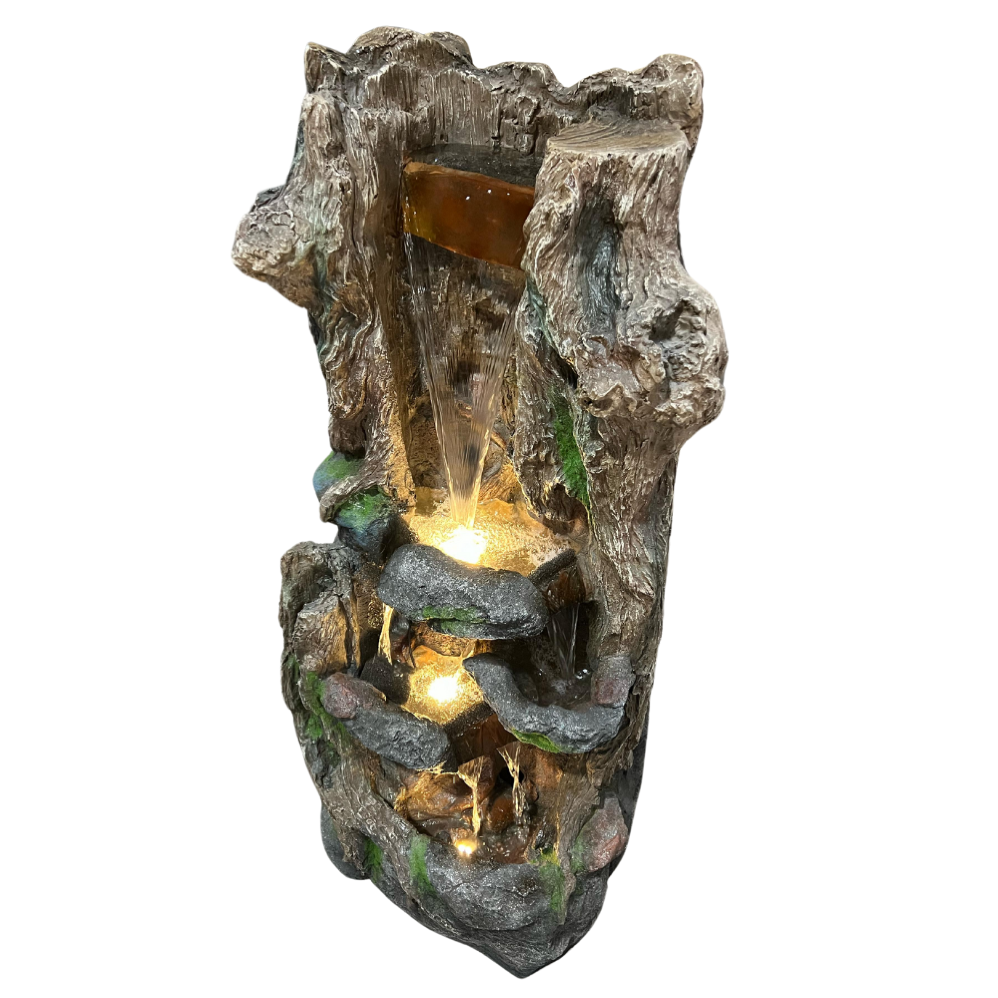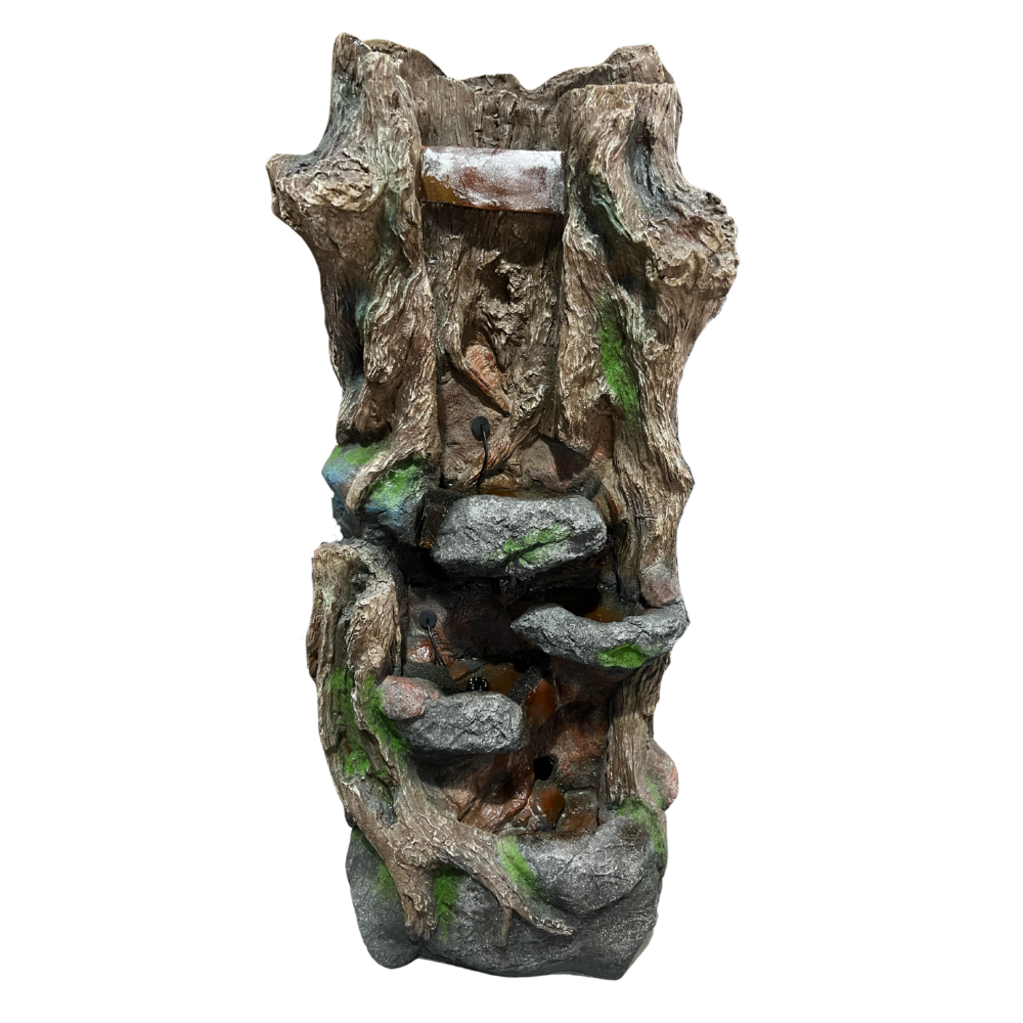 FUENTE GIGANTE SIMIL TRONCO 4 JARRONES Y LUCES 53X45X120