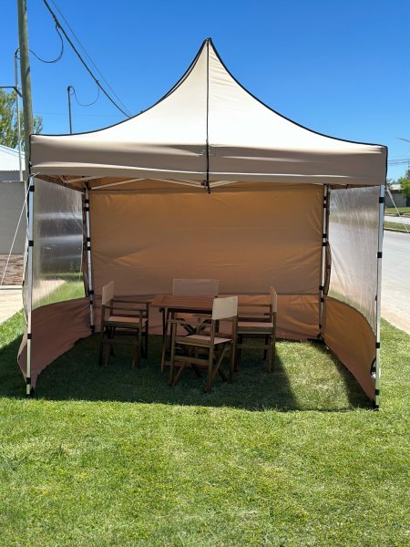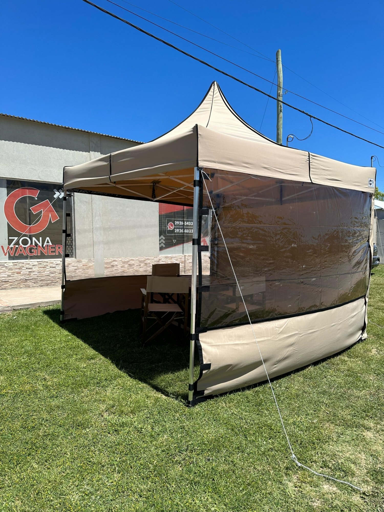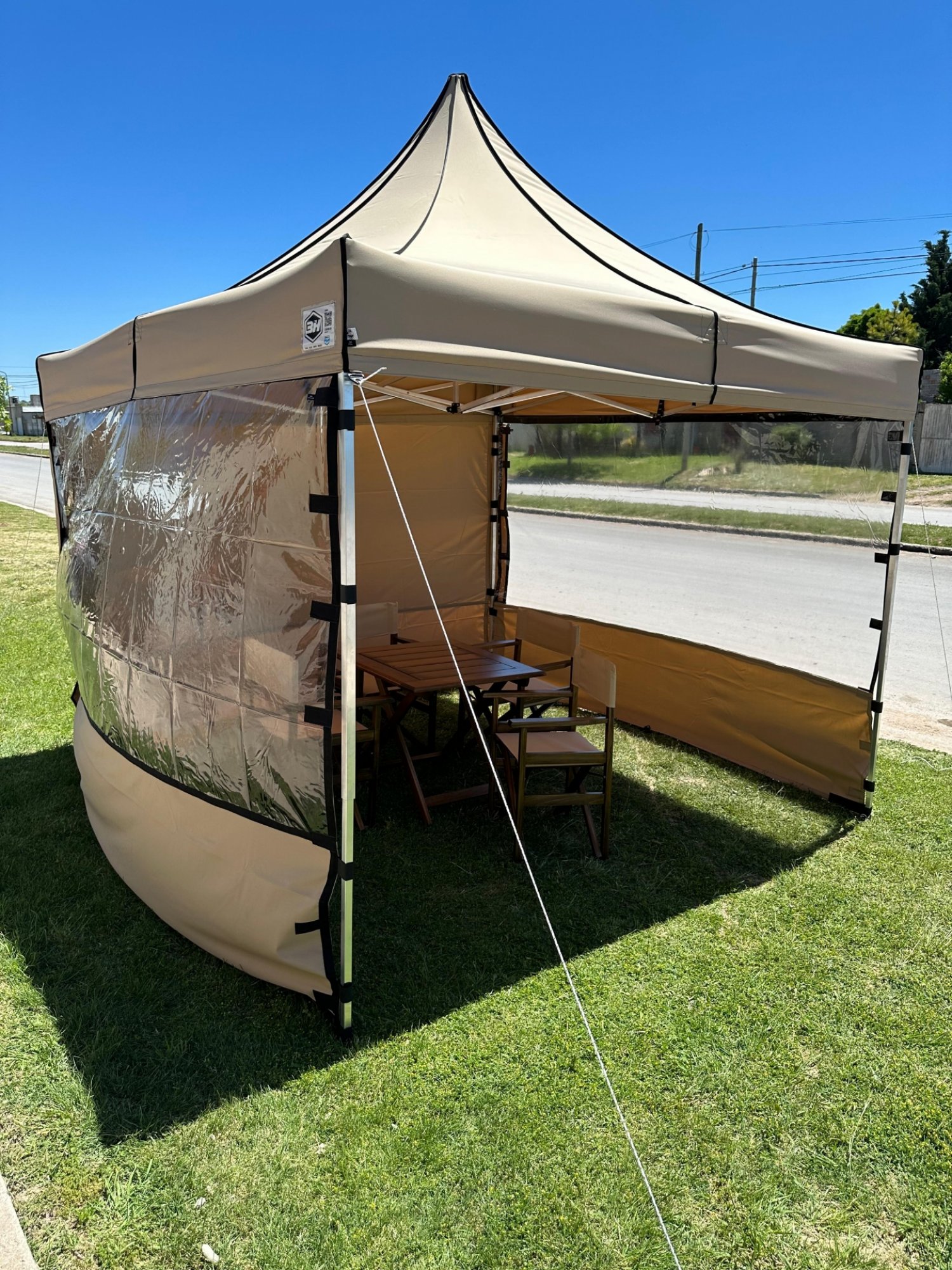 2 laterales vidriados de 3 metros de ancho por 2,10 metros de altura de poliester con tratamiento UV y resistencia al agua