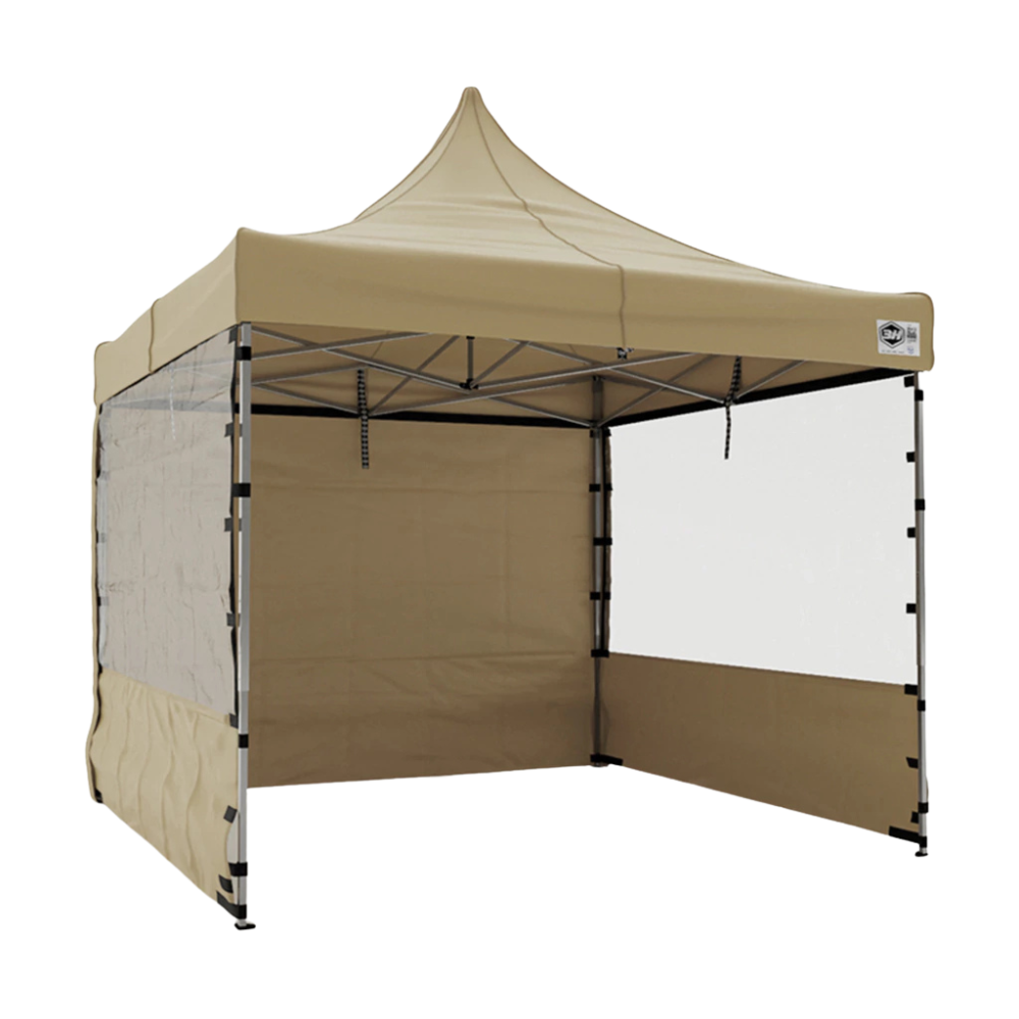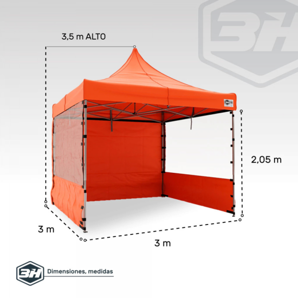 1 lateral ciego de 3 metros de ancho por 2,10 metros de altura de poliester con tratamiento UV y resistencia al agua