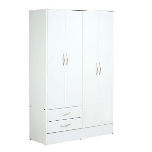 Placard que consta de 4 puertas de abrir y 2 cajones con correderas metálicas. En las puertas que se encuentran arriba de los cajones nos vamos a encontrar con 4 estantes de los cuales 2 son moviles; y en las puertas mas largas nos encontramos con 2 barrales para que cuelgues tus prendas.- 4 puertas