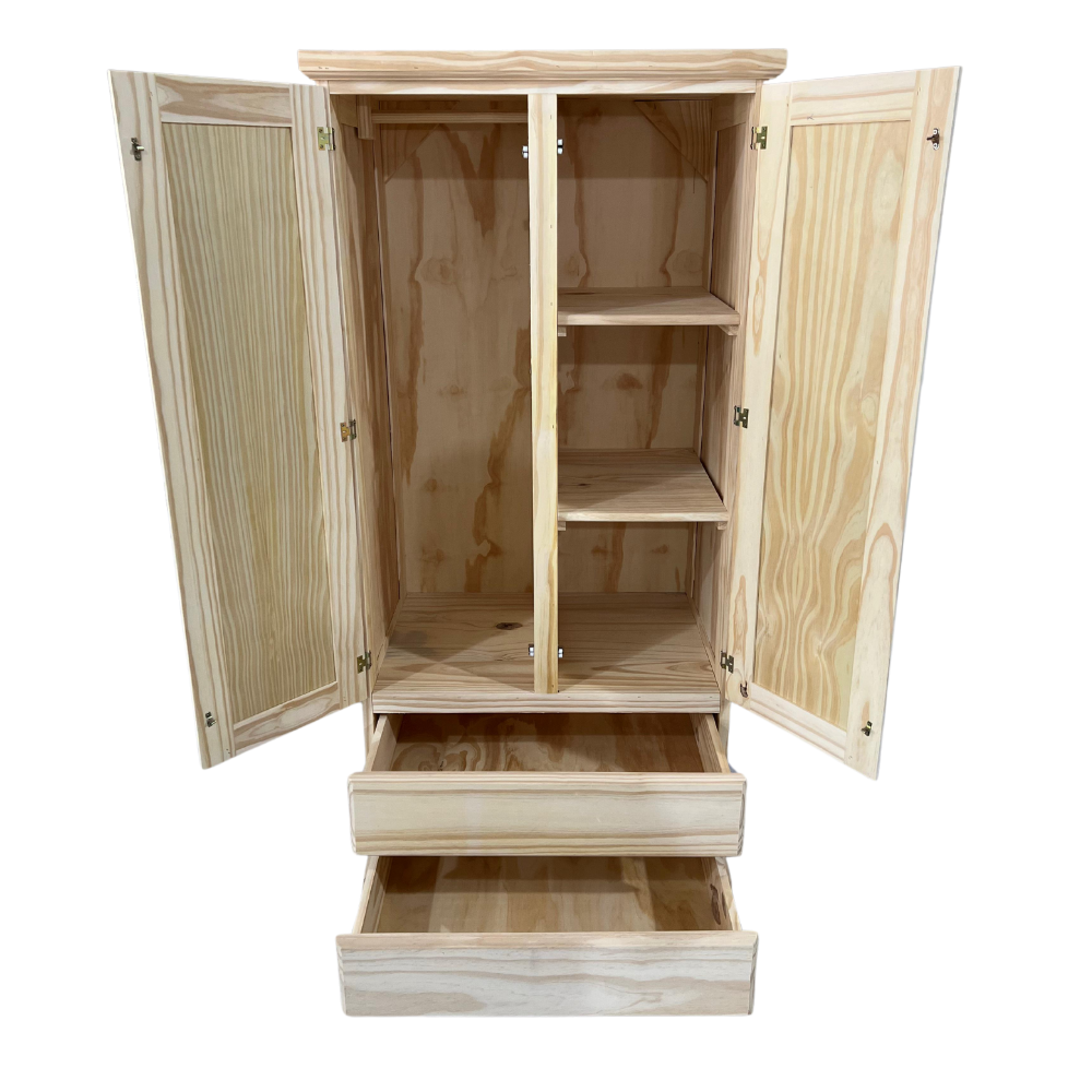 Placard que consta de 2 puertas de abrir y 2 cajones con correderas metálicas. Fabricado con pino seleccionado y tableros de gran espesor para darle la fortaleza y estructura que necesita!- 2 puertas